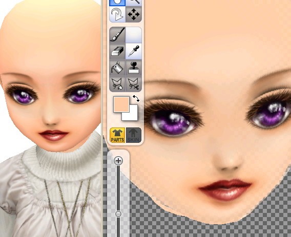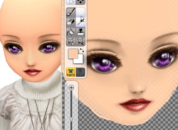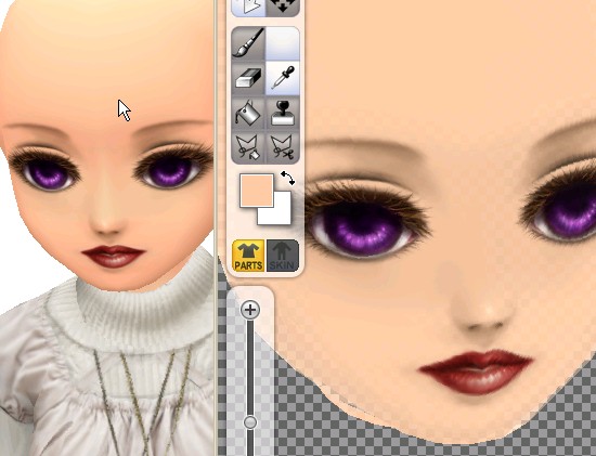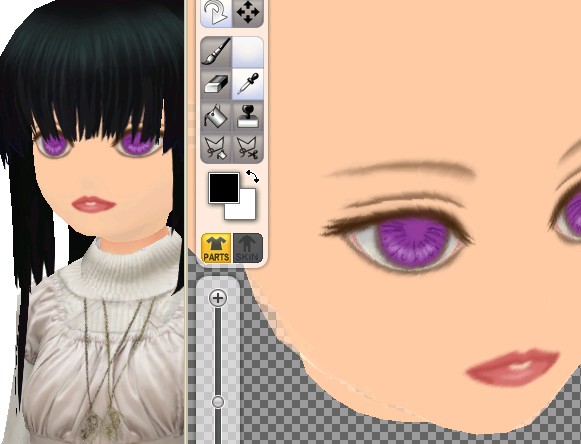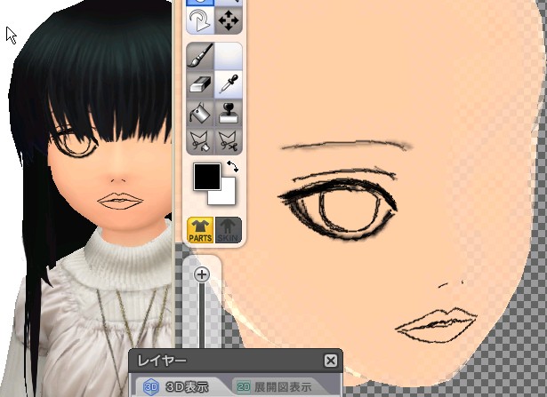 とちゅうで目の大きさなどを若干いじったため、瞳がちょっと歪んでしまっていたので、小さなブラシでぐりぐりと修正。