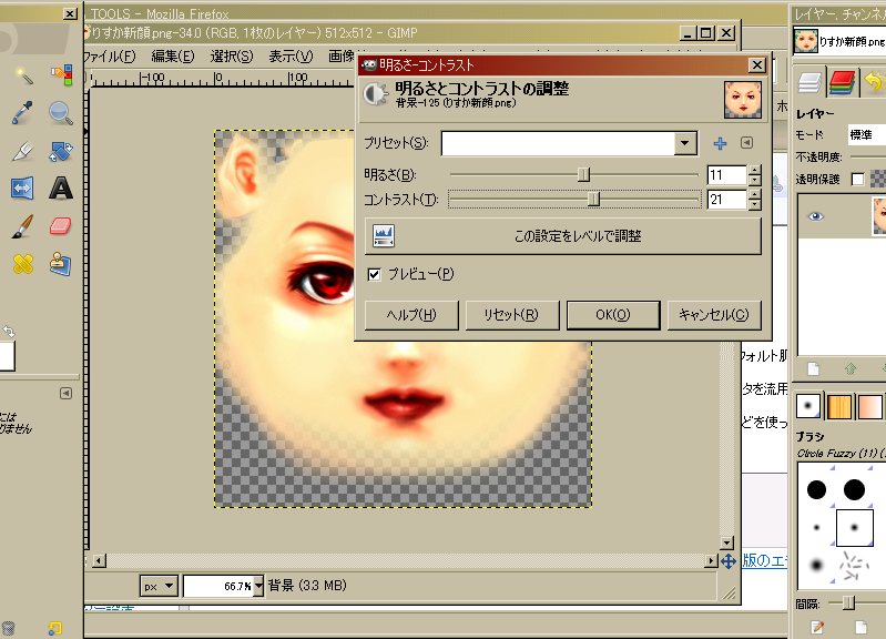 以降は全てGIMPでの作業となりますが、エディタは常に立ち上げっぱなしで、こまめに取り込んで確認しながら進めていきます。
