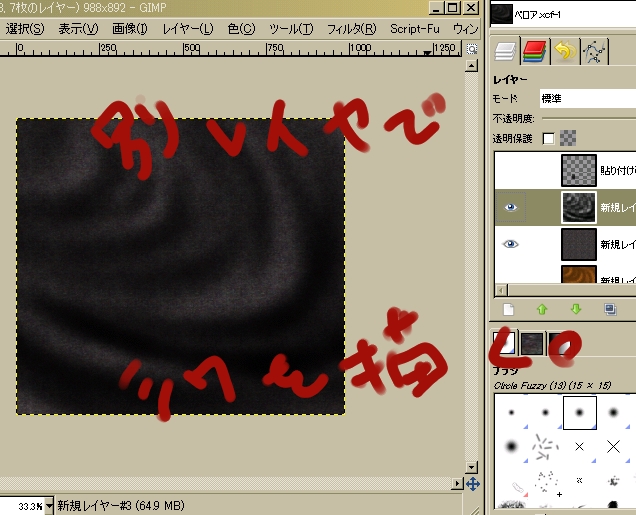 透明レイヤに、柔らかい布にシワがよっている感じを思い浮かべながら影を描きます。