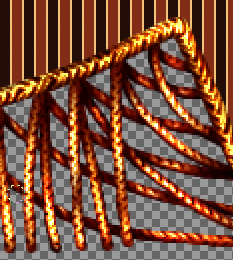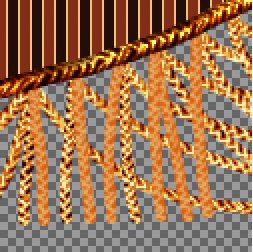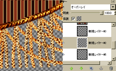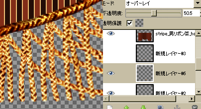 いろいろ試行錯誤した結果、ゴールドグラデのマッピングよりも、ただの着色レイヤのオーバーレイの方が綺麗に紐っぽさが出るということが判明しました。