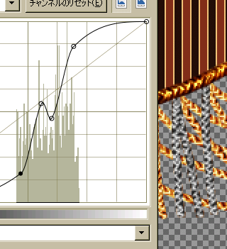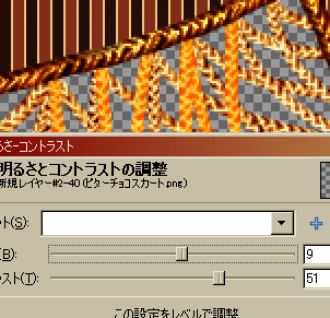 1.のレイヤを前面に持ってきて、明るさとコントラストを適当にいじる。